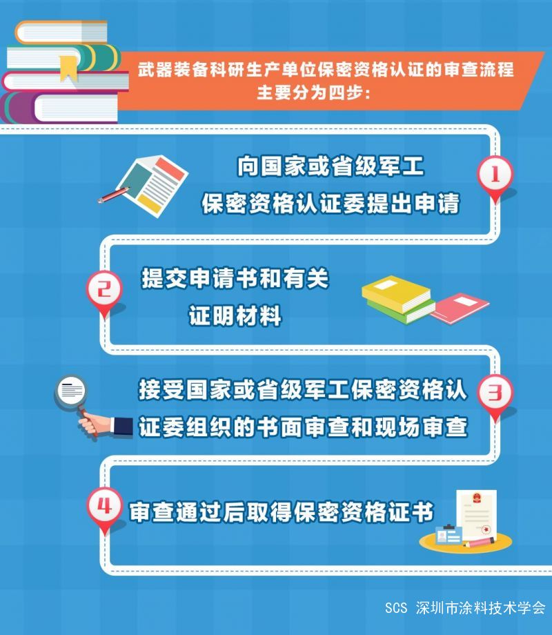 查看自己企业满足条件之后,就要走武器装备科研生产单位保密资格认证的审查流程了,这一步是证书能否成功获取的关键,企业需要详细了解熟悉以下流程。从流程的宏观来看,主要分为四步: