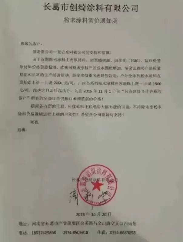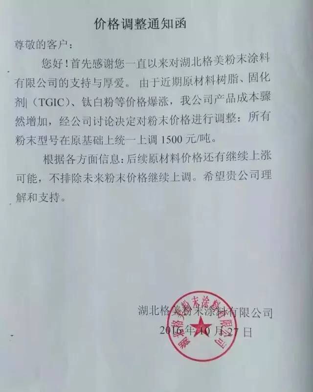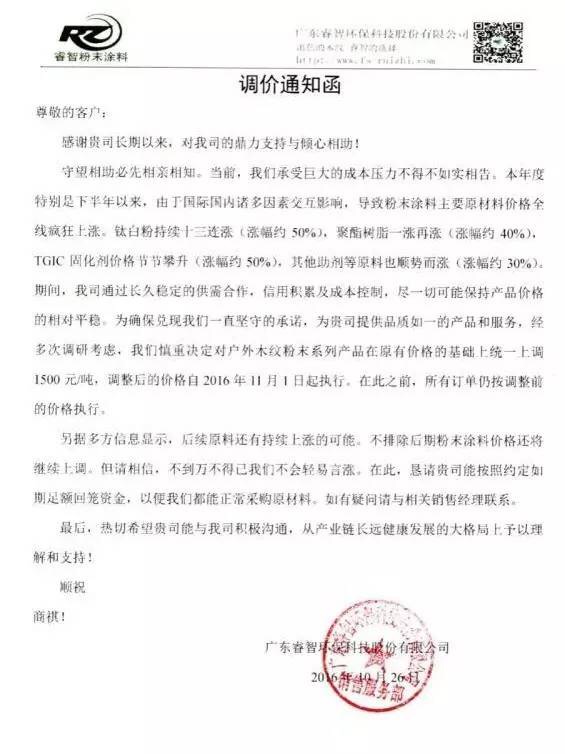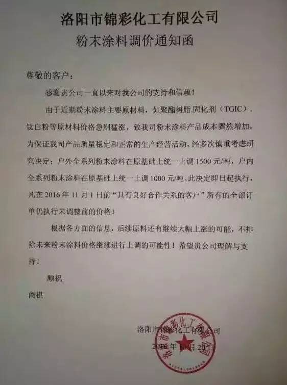 注:以上涨价函由企业提供,后期持续更新, 随着原材料价格的不断上涨、供应短缺,加上运输新政策的影响,涂料企业成本压力不断增大,对产品价格进行调整,显得无可厚非。
