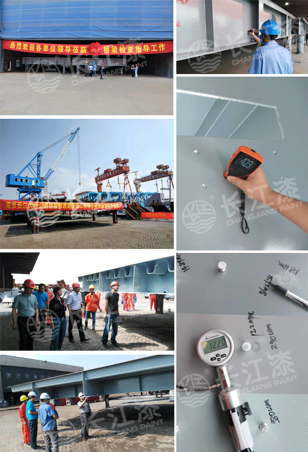 长江涂料为大桥主体全部钢构桥面板提供了底、中、面涂料产品和涂装配套方案,技术团队全程跟踪服务和涂装指导。
