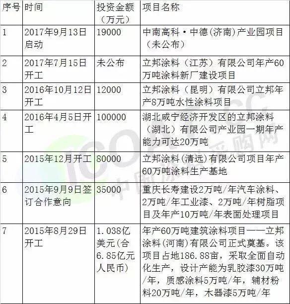 立邦投资项目名单