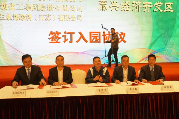 展辰新材料集团股份有限公、君子兰集团、嘉宝莉化工集团股份有限公司、欧利生东邦涂料(江苏)有限公司等四个项目与园区签订了入园协议,成为首批入驻涂装涂料产业园的企业,并共同发表了“绿色涂料一致行动宣言”。