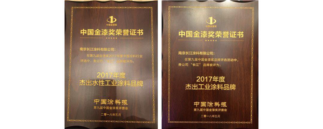 会上,长江涂料喜获2017年度“杰出工业涂料品牌”和“杰出水性工业涂料品牌”两项殊荣。这是市场对“长江”牌涂料产品的认可,也是我司自身不断努力的结果。