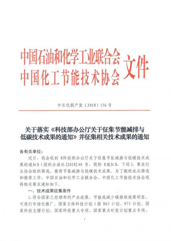 关于落实科技部办公厅关于征集节能减排与低碳技术成果的通知并征集相关技术成果的通知
