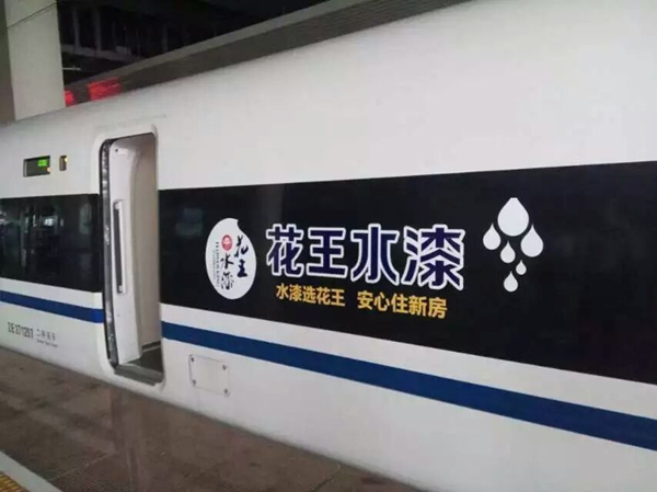 “花王水漆”号在高铁列车车身外彩贴涂料品牌标识在全国涂料界属首例,这是花王水漆首次借助高铁列车进行品牌宣传,将对企业今后战略规划起到关键作用,希望通过“花王水漆”号打开并站稳水性涂料市场,预示着集团公司的品牌、理念和产业发展正向水性涂料市场拓展,集团公司发展的速度已经在业内引起了高度的关注。在此关键的时刻点,“花王水漆”冠名高铁列车显得格外引人注目,“花王水漆”号列车代表的“速度”、“环保”、“健康”将在未来的水性涂料市场掀起更大的波澜。