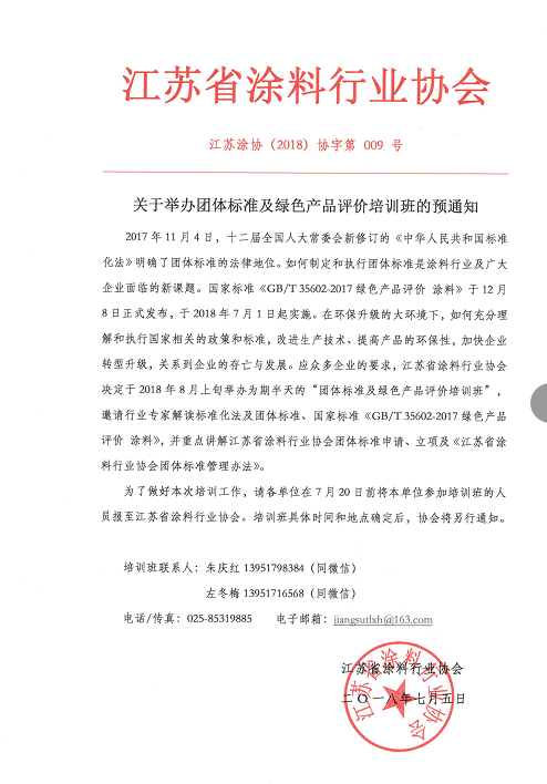 关于举办团体标准及绿色产品评价培训班的通知