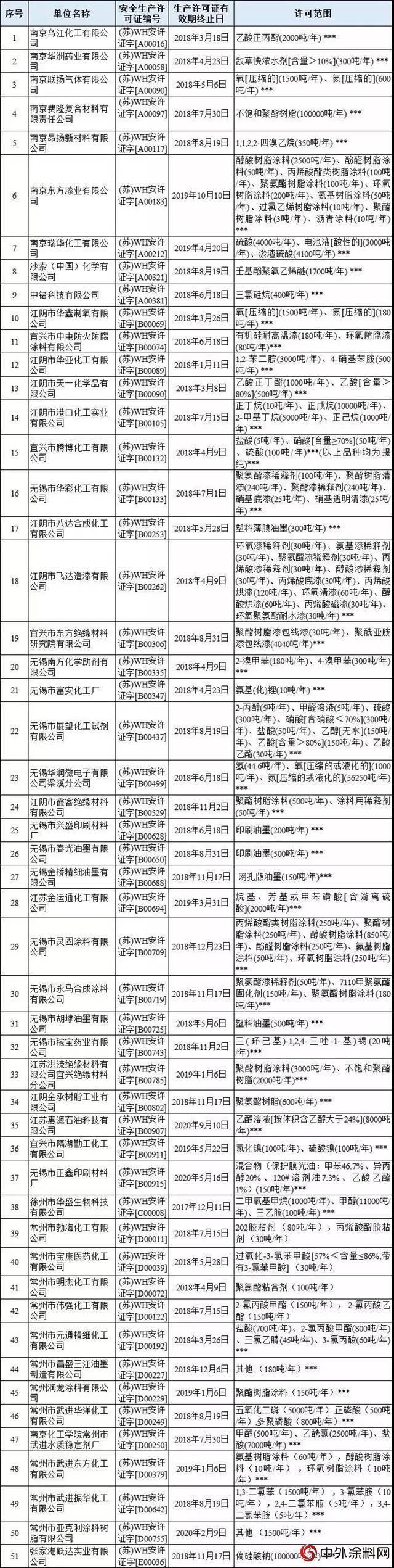 http://www.27580.cn 来源:江苏安监 7月13日,江苏省安监局发布公告称:截止2018年6月30日,全省共有南京乌江化工有限公司等113家危险化学品生产企业的《危险化学品生产企业安全生产许可证》不在有效期内,或者在有效期内不再从事危险化学品生产活动,一并注销安全生产许可证,现予以公告。
