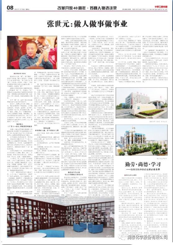最后,张世元说:“我的目标是让润泰最终成为全球化工500强百年企业。”