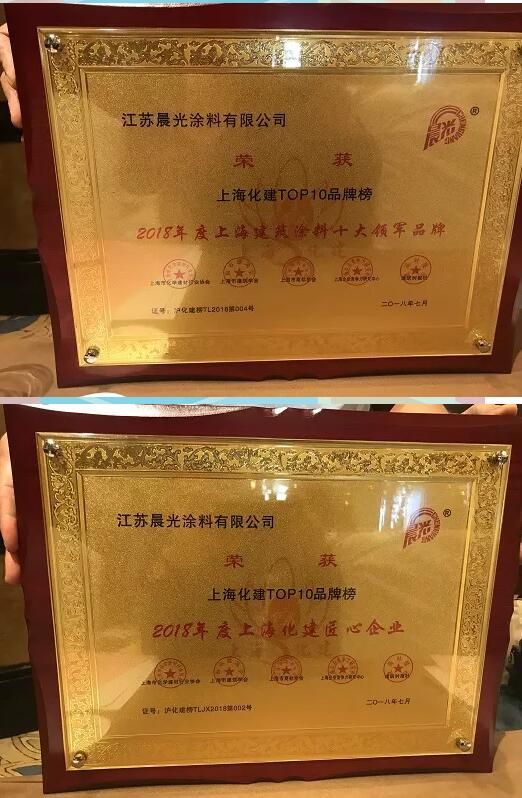 晨光涂料,在这种发展大势之下也有所建树,作为年度行业盛会,在会上对助力行业发展、在新品研发方面取得的成就企业也给予表彰,晨光涂料荣登上海化建TOP10品牌榜,荣获“2018年度上海化建匠心企业”、“2018年度上海建筑涂料十大领军品牌”两项大奖,同时晨光总部林志刚同志以精湛的建筑涂料施工技艺荣获“2018年度上海建筑涂料行业化建工匠”,多项来自业内的认可,让晨光备受鼓舞。