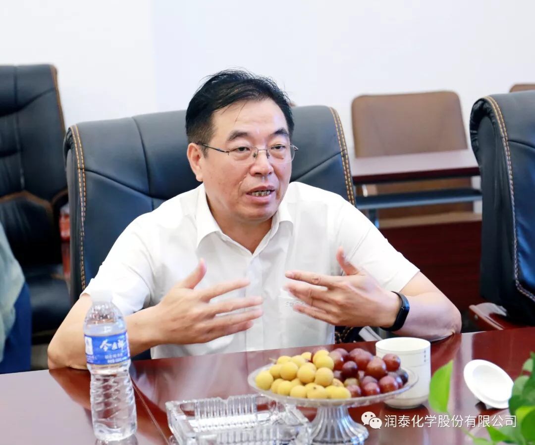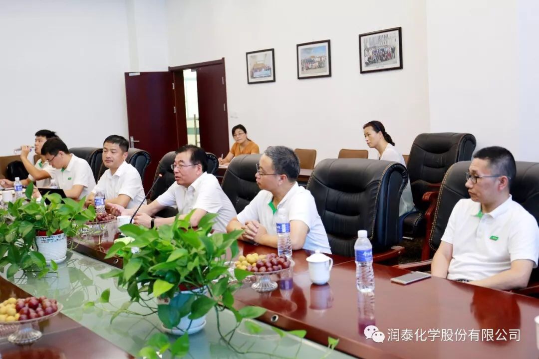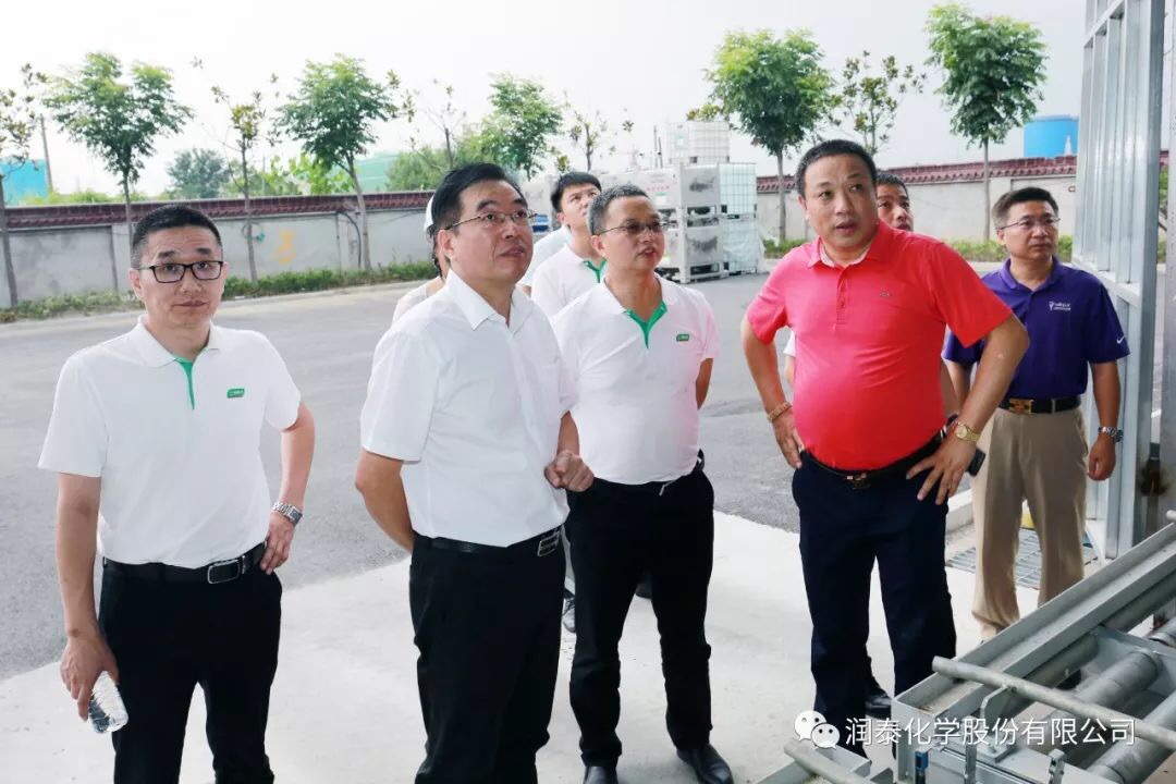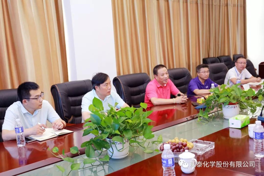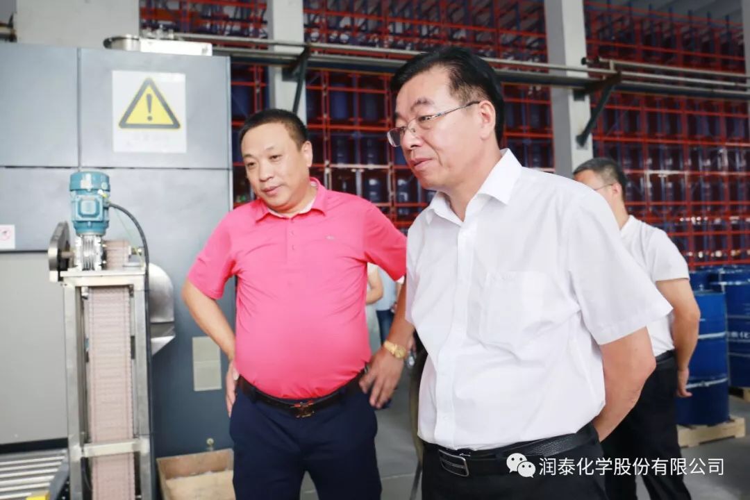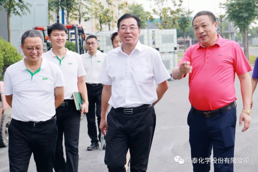 润泰股份讯 7月26日,三棵树涂料股份有限公司方国钦董事、朱奇峰副总裁一行莅临考察润泰化学(泰兴)有限公司,在董事长张世元和总经理薛和太的陪同下,对公司进行了实地考察,双方就今后的合作进行了坦诚的交流。
