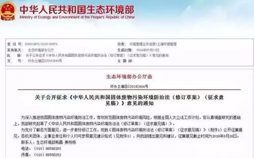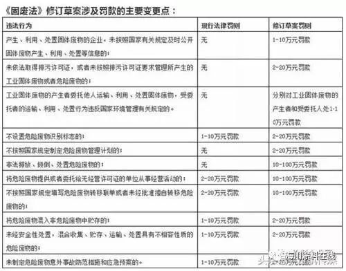 近日,生态环境部发布《中华人民共和国固体废物污染环境防治法(修订草案)(征求意见稿)》,引起广泛关注。修订草案除了增设生产者责任延伸制度、垃圾分类制度等,还对具体罚则进行了修订,多项违法行为罚款提升至100万元,涂企环境违法成本进一步增大。
