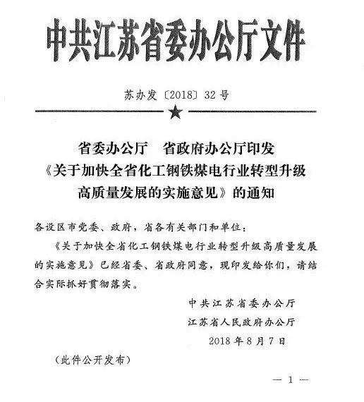 近日,为加快推动全省化工、钢铁、煤电行业转型升级、高质量发展,江苏省委、省政府办公厅印发《关于加快全省化工钢铁煤电行业转型升级高质量发展的实施意见》(简称“意见”)的通知。意见的实施,是根据市场供求形势变化,运用市场化、法制化等手段,来提高化工园区基础设施建设标准,并倒逼化工企业、化工园区产业的转型升级。