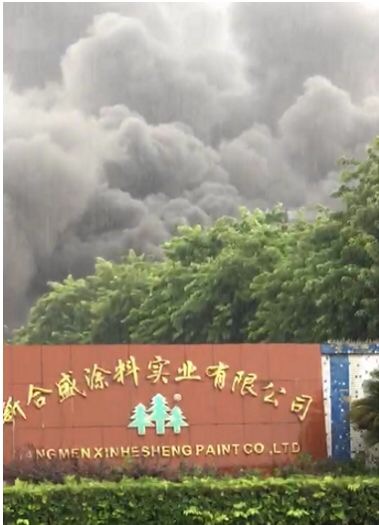 8月6日中午12时12分,江门市新合盛涂料实业有限公司发生火灾,现场浓烟滚滚。江门支队赶赴现场处置。事故的起因是由于丙类临时仓库怀疑受到雷击而发生火灾,该临时仓库建筑面积约230平方米,过火面积约150平方米。发生火灾时仓库存放有空桶、包装物、粉料以及废油等物料。