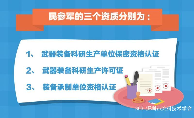 “装备承制单位资格审查”与“武器装备质量管理体系认证”两证合一后,民参军的三个资质分别为: