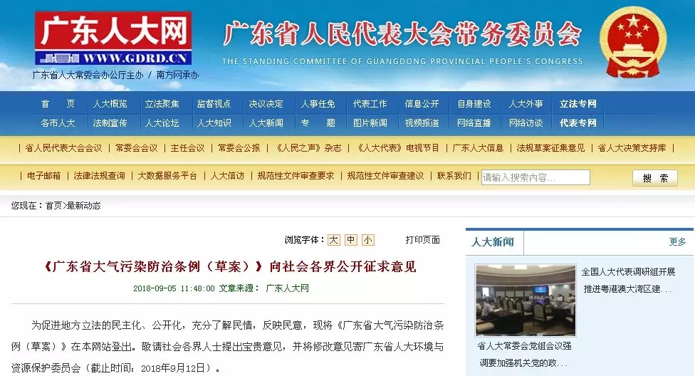 9月5日,《广东省大气污染防治条例(草案)》向社会各界公开征求意见,根据草案,珠江三角洲区域将禁止新建、扩建国家规划外的钢铁、原油加工、乙烯生产、造纸、水泥、平板玻璃、除特种陶瓷以外的陶瓷、有色金属冶炼等大气重污染项目。