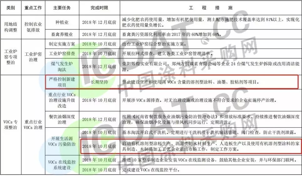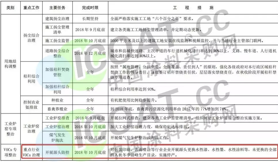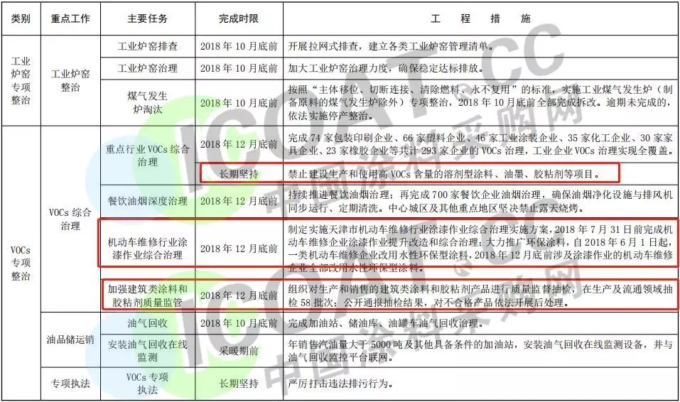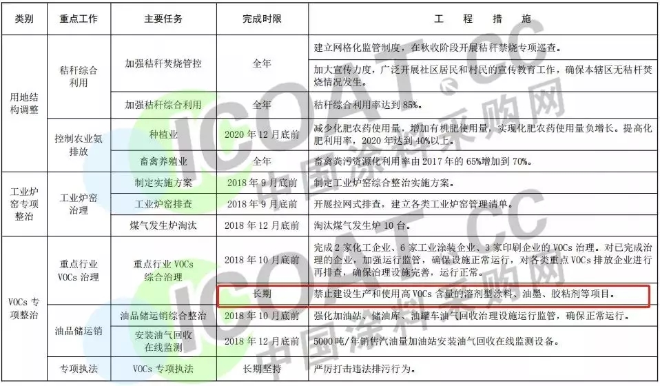 据涂料采购网了解,9月27日,生态环境部、国家发展和改革委员会、工业和信息化部、公安部、财政部、自然资源部等18个部门联合发布《京津冀及周边地区2018-2019年秋冬季大气污染综合治理攻坚行动方案》的通知。 根据该方案相关内容,对京津冀及周边地区,包含北京市,天津市,河北省石家庄、唐山、邯郸、邢台、保定、沧州、廊坊、衡水市,山西省太原、阳泉、长治、晋城市,山东省济南、淄博、济宁、德州、聊城、滨州、菏泽市,河南省郑州、开封、安阳、鹤壁、新乡、焦作、濮阳市(以下简称“2+26”城市,含河北省定州市、辛集市,河南省济源市)2018~2019年秋冬季大气污染综合治理进行了明确的规定。 部分内容如下: 各地禁止新增化工园区,加大各类开发区整合提升和集中整治力度,减少工业聚集区污染。按照“一区一热源”原则,推进园区内分散燃煤锅炉有效整合。有条件的工业聚集区建设集中喷涂工程中心,配套高效治污设施,替代企业独立喷涂工序。 深入推进重点行业 VOCs 专项整治。按照分业施策、一行一策的原则,推进重点行业 VOCs 治理。鼓励各省(市)编制重点行业VOCs 污染治理技术指南。2018 年 12 月底前,各地完成重点工业行业 VOCs 综合整治及提标改造。未完成治理改造的企业,依法实施停产整治,纳入冬季错峰生产方案。 加强源头控制。禁止新改扩建涉高 VOCs 含量溶剂型涂料、油墨、胶粘剂等生产和使用的项目。积极推进工业、建筑、汽修等行业使用低(无)VOCs 含量原辅材料和产品。自 2019 年 1 月 1 日起,汽车原厂涂料、木器涂料、工程机械涂料、工业防腐涂料即用状态下的 VOCs 含量限值分别不高于 580、600、550、550 克/升。北京、天津、河北省(市)严格执行《建筑类涂料与胶粘剂挥发性有机化合物含量限值标准》要求,加强建筑类涂料和胶粘剂产品质量监督检测; “2+26”城市中其他城市自 2019 年 1 月 1 日起参照执行。积极推进汽修行业使用低 VOCs 含量的涂料,自 2019 年 1 月 1 日起,汽车修补漆全部使用即用状态下 VOCs 含量不高于 540 克/升的涂料,其中,底色漆和面漆不高于 420 克/升。 强化 VOCs 无组织排放管控。开展工业企业 VOCs 无组织排放摸底排查,包括工艺过程无组织排放、动静密封点泄漏、储存和装卸逸散排放、废水废液废渣系统逸散排放等。2018 年 10 月底前,各地建立重点行业 VOCs 无组织排放改造全口径清单,加快推进 VOCs无组织排放治理。 加强工艺过程无组织排放控制。VOCs 物料应储存于密闭储罐或密闭容器中,并采用密闭管道或密闭容器输送;离心、过滤单元操作采用密闭式离心机、压滤机等设备,干燥单元操作采用密闭干燥设备,设备排气孔排放 VOCs 应收集处理;反应尾气、蒸馏装置不凝尾气等工艺排气,以及工艺容器的置换气、吹扫气、抽真空排气等应收集处理。 北京市重点推进石化、包装印刷、工业涂装等行业 VOCs 治理升级改造,全面推动实施餐饮行业达标治理改造,完成 VOCs 治理任务61 家;天津市重点推进石化、塑料、橡胶制品、家具等工业涂装、包装印刷等行业 VOCs 综合治理,完成 VOCs 治理任务 293 家,持续推进餐饮油烟深度治理和机动车维修行业涂漆作业综合治理;河北省重点推进石化、焦化、制药、橡胶制品、塑料、工业涂装、包装印刷等行业 VOCs 综合治理,完成治理任务 640 家;山西省重点推进有机化工、焦化、橡胶制品、工业涂装行业 VOCs 综合治理,完成治理任务 79 家;山东省重点推进石化、制药、农药、工业涂装、包装印刷等行业 VOCs 综合治理,完成治理任务 364 家;河南省重点推进煤化工、农药、制药、橡胶制品、工业涂装等行业 VOCs 综合治理,完成治理任务 126 家。 北京市 2018-2019 年秋冬季大气污染综合治理攻坚行动方案 天津市 2018-2019 年秋冬季大气污染综合治理攻坚行动方案 山西省太原市 2018-2019 年秋冬季大气污染综合治理攻坚行动方案 山西省阳泉市 2018-2019 年秋冬季大气污染综合治理攻坚行动方案 山西省长治市 2018-2019 年秋冬季大气污染综合治理攻坚行动方案 山东省淄博市 2018-2019 年秋冬季大气污染综合治理攻坚行动方案 山东省济宁市 2018-2019 年秋冬季大气污染综合治理攻坚行动方案 河南省郑州市 2018-2019 年秋冬季大气污染综合治理攻坚行动方案