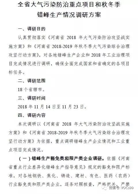 河南印发《全省大气污染防治重点项目和秋冬季错峰生产情况调研方案》。涉及4大行业超低排放限值,12个行业VOCs排放建议值。 日前,河南印发《全省大气污染防治重点项目和秋冬季错峰生产情况调研方案》。随文公布了工业企业挥发性有机物排放建议值和重点行业超低排放限值。涉及4大行业超低排放限值,12个行业VOCs排放建议值。