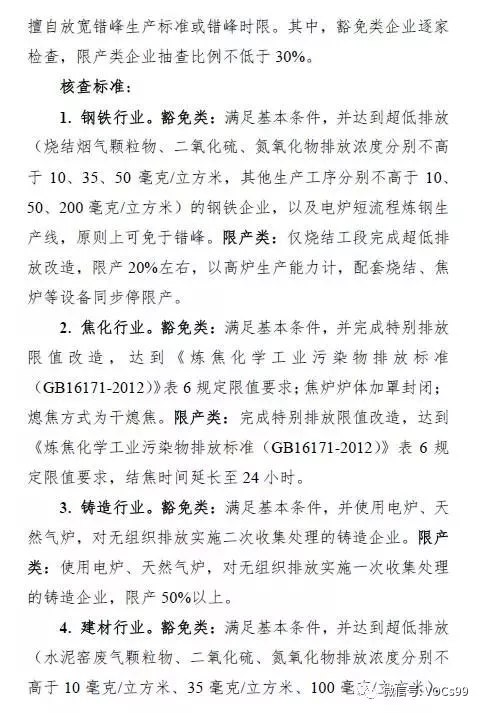 3.炭素行业(铝用炭素) 炭素企业完成超低排放改造后,煅烧、焙烧工序烟尘、二氧化硫、氮氧化物排放浓度要分别不高于10毫克/立方米、35毫克/立方米、100毫克/立方米。