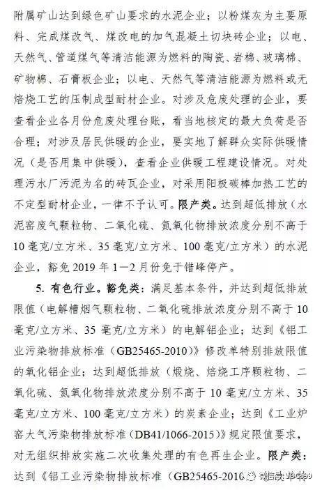 2.水泥行业 水泥熟料企业完成超低排放改造后,水泥窑废气颗粒物、二氧化硫、氮氧化物排放浓度要分别不高于10毫克/立方米、35毫克/立方米、100毫克/立方米。