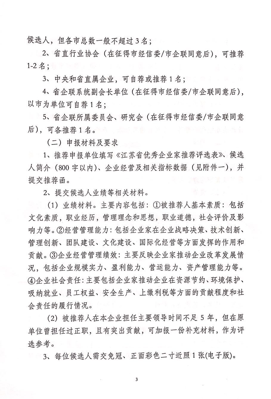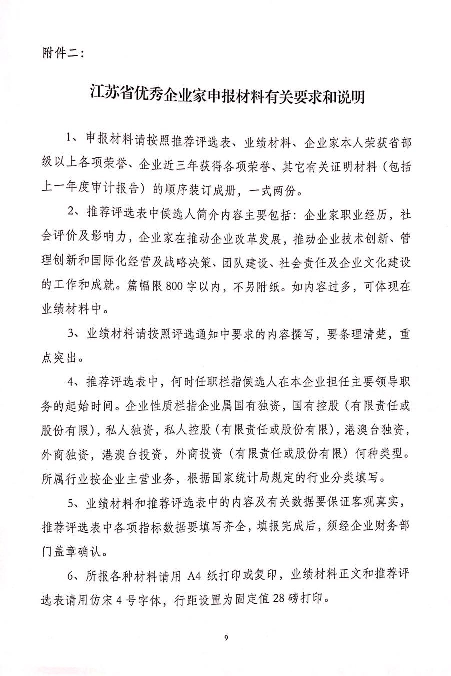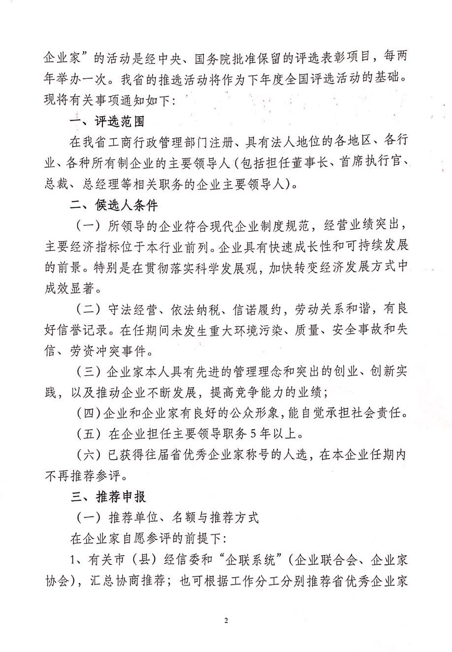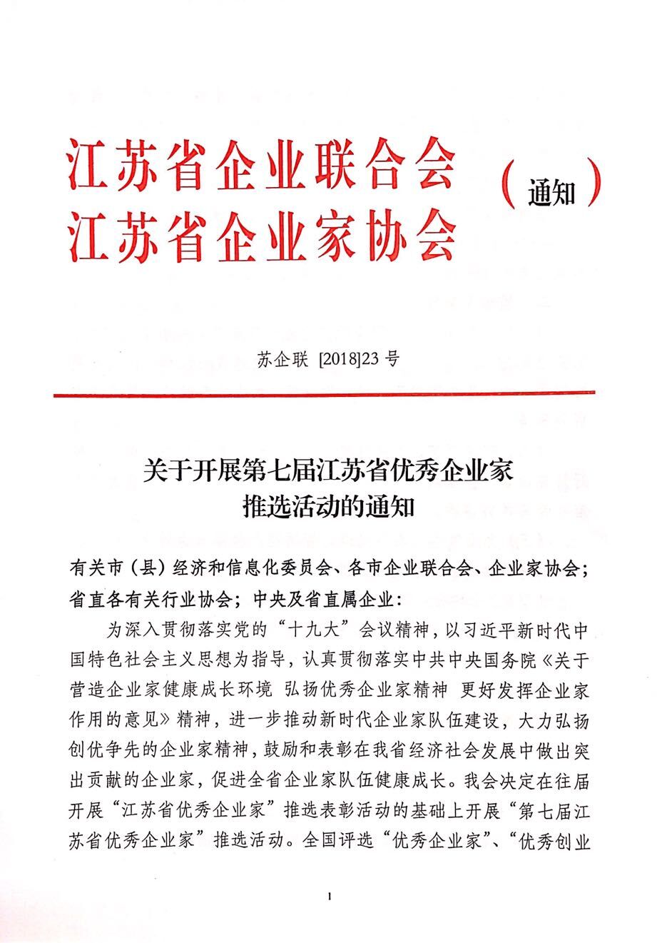 关于开展第七届江苏省优秀企业家推选活动的通知