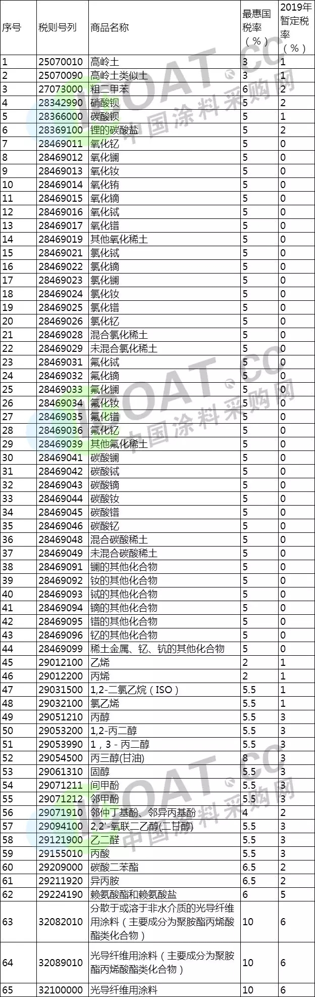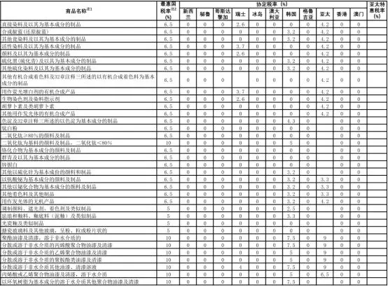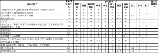 除此之外,对新西兰、秘鲁、哥斯达黎加、瑞士、冰岛、澳大利亚、韩国、格鲁吉亚、亚太、香港、澳门等地区的进口关税进行了调整,对部分涂料产品的进口实现了零关税。