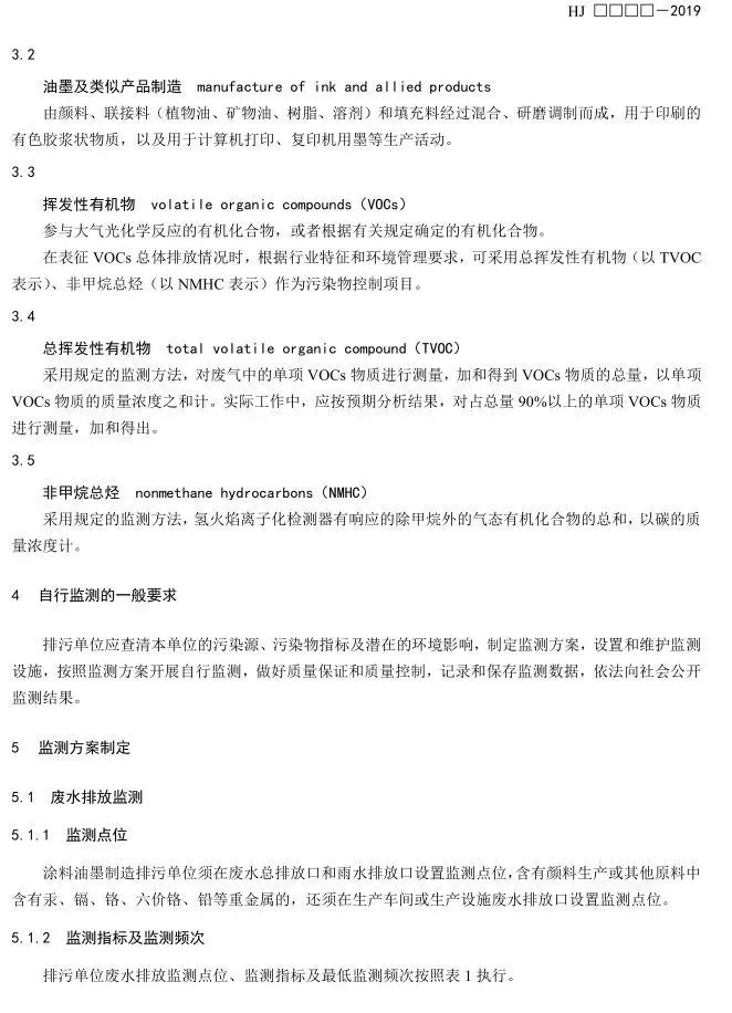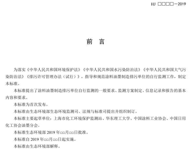 近日,由生态环境部发布的“排污单位自行检测技术指南”引起了涂料油墨制造行业的关注,此标准中提出了涂料油墨制造排污单位自行监测的一般要求、监测方案制定、信息记录和报道的基本内容和要求。此标准适用于涂料油墨制造排污单位在生产运行阶段对其排放的水、气污染物,噪音以及对周边环境质量影响开展自行监测。 其中涂料制造方面,指在天然树脂或合成树脂中加入颜料、溶剂和辅助材料,经加工后制成的覆盖材料的生产活动,包括涂料及其稀释剂、脱漆剂等辅助材料的制备环节。 而挥发性有机物方面,参与大气光化学反应的有机化合物,或者根据有关规定确定的有机化合物。在表征VOCs总体排放情况时,根据行业特征和环境管理要求,可采用总挥发性有机物(以TVOC表示)、非甲烷总烃(以NMHC表示)作为污染控制项目。