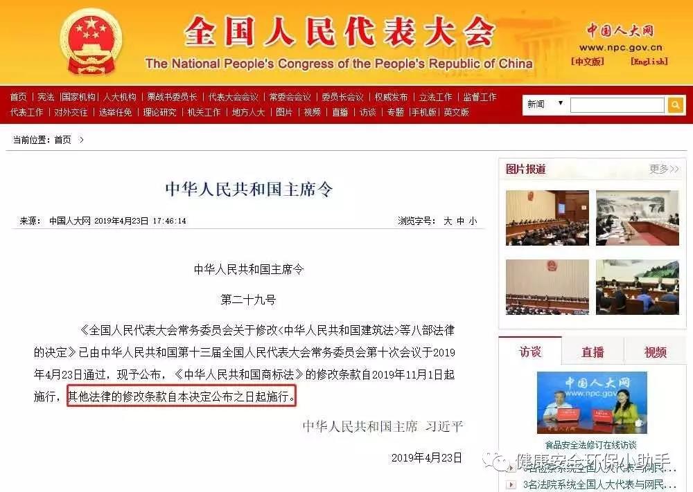 4月23日下午,第十三届全国人民代表大会常务委员会第十次会议,表决通过《中《中华人民共和国消防法》等八部法律的修改,消防法即日起实施。