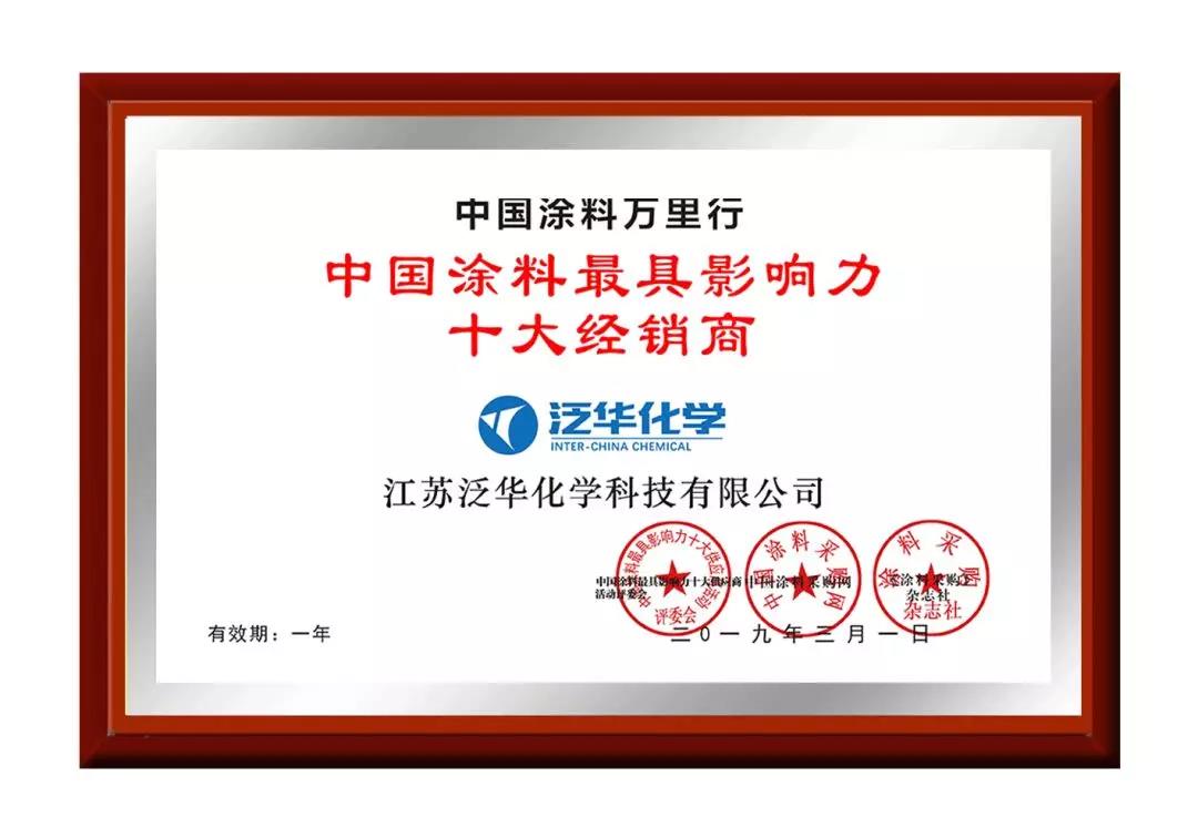 为了能够缩短涂料企业的招采时间,降低涂料企业的招采成本,涂料采购网组织了“中国涂料万里行之中国涂料最具影响力十大经销商”评选活动,在此次评选活动中,江苏泛华化学科技有限公司(以下简称“泛华化学”)脱颖而出,荣获“中国涂料万里行之中国涂料最具影响力十大经销商”称号。