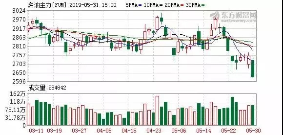5月31日消息,受隔夜油价大跌影响,国内商品期货日盘收盘大面积飘绿,化工品期货跌幅明显,原油、燃油领跌,其中原油主力合约跌逾5%,另外,沥青、甲醇等期货均跌超2%。