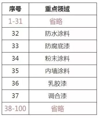 此次公示的重点领域有100个,据悉,这是涂料产品首次列为2019年企业标准“领跑者”重点领域。