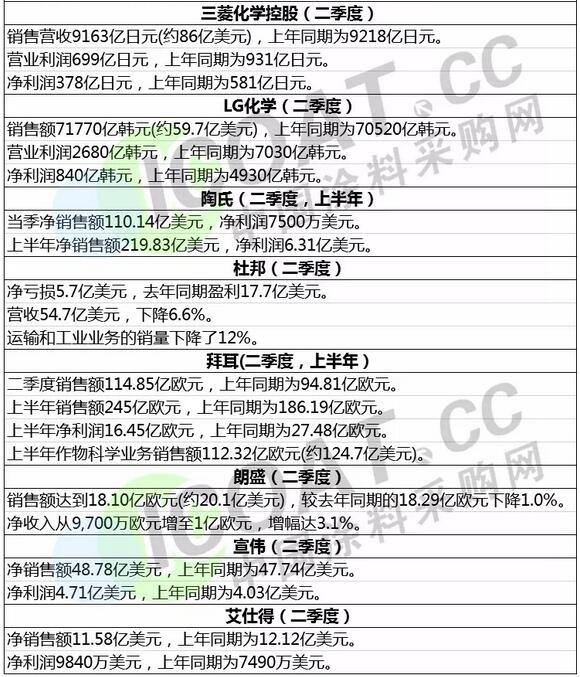 除了国内的上市公司以外,国外的不少化工企业也对自己二季度或半年的经营情况作出了预告。