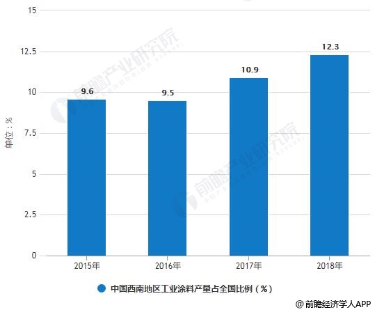 2018年中国西南地区工业涂料产量占全国比例统计情况
