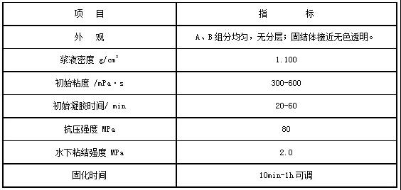 ③采用了特定的疏水组分及特制的固化剂,能够在水下或有明水的地方完整固化。