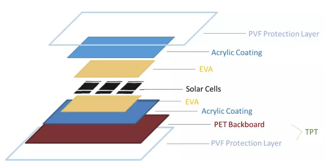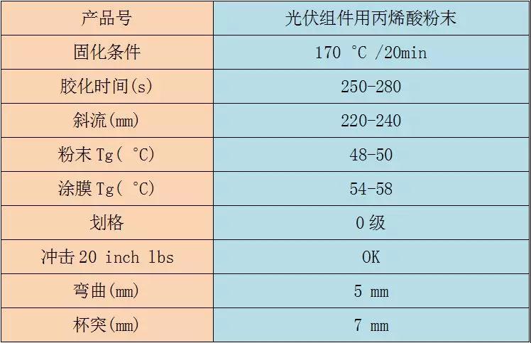 在当前社会,能源矛盾与环境问题越来越凸显,发展各类清洁能源是必然趋势。近年来,光伏行业快速发展,技术更新逐步加快,目前光伏行业正向产品多元化发展,高可靠性、高功率、低安装成本的各种功能组件研究开发已成为光伏组件发展的一种方向。传统玻璃光伏组件其重量每平方米达到10kg以上,加上安装支撑结构,光伏组件每平方米的重量至少达到12kg以上。当其应用在建筑物顶部或墙面等场合中,对光伏组件的支撑结构提出了较高的要求,增加了工程建设难度以及安装的成本,具体表现为:在建筑物顶部或墙面安装过程中,存在重量重,安装劳动强度大,实施困难;特别在有一些场合由于建筑承重载荷的限制,导致无法安装光伏组件。 因此,有必要寻求一种光伏组件用新型封装材料来解决现有光伏组件封装结构中存在的封装材料重量重的问题。此新型材料应具有重量轻,易折弯,不易破碎等优点,同时又满足抗紫外、抗老化、抗冲击、防火等光伏行业技术标准的要求。 图1 封装材料结构示意图 将粉末涂料不经过喷涂成膜而是直接通过热压成型,制成透明、耐候、耐水、耐化学品,而又柔软轻薄的封装材料,替代传统的玻璃,是一个很好的选择。经过多次论证和前期理论研究,我们决定采用丙烯酸体系来开发这个产品。丙烯酸粉末涂料透明度高,耐候性好,耐化学性能好,浸润性好,反应活性高等优点,可以符合太阳能行业的要求。由于市面上的绝大多数粉末涂料用丙烯酸树脂都是针对于汽车轮毂行业的,其耐候性,耐化学品性,反应活性等均不符合太阳能行业的要求。我们联合国内专业丙烯酸树脂供应商,为太阳能行业特别开发了专用的丙烯酸树脂。 经过不懈努力,丙烯酸产品已经通过客户稳定批量生产,客户使用后反馈性能稳定,各项性能指标都能满足光伏行业的封装标准要求。其中透光率达到94%,170℃下能够完全固化成型,3000小时UVB照射后色差小于1.5,保光率大于95%,达到户外20年的耐候级别,湿热1000小时后的色差小于1.5,保光率大于90%,急冻测试和冷热循环测试后的力学性能均达到光伏行业要求。 结果与讨论 光伏组件用丙烯酸树脂是GMA型的丙烯酸树脂,这种树脂具有透明度好,反应活性大,粘度低等优点,非常符合太阳能光伏面板的应用需求。透明度方面,客户使用结果表明,丙烯酸粉末层压出来的组件透明度相当高,透光率达到94%,跟光伏常规玻璃面板的透光率一致,光电转化效率也跟常规玻璃组件无异。由于光伏组件里面还有其他组分,这些组分不耐高温,当层压温度高于170 ℃以后,这些组分便开始不稳定并分解,所以用于光伏组件的粉末涂料体系必须能够在170度以下固化成型。光伏组件用丙烯酸粉末在170 ℃20分钟的固化条件下可以完全固化成型,170 ℃的胶化时间大约在270秒左右,反应速度较快。同时粉末又必须跟其他组分之间有很好的相容性,结合力和浸润性,使得组件不会在使用过程中脱开。这个用于光伏组件的丙烯酸粉末在170 ℃下具有很好的流动性,斜流长达230毫米,可以很好的浸润和包覆基材。光伏组件用丙烯酸粉末具有比较好的机械性能,固化以后有一定的弯曲性和韧性,能够让组件应用于不同的建筑物外立面上,大大拓展了光伏组件的应用范围。 表2 光伏组件用丙烯酸粉末的基本性能 太阳能光伏应用对光伏组件的耐候要求非常的高,因为组件需常年经受太阳的暴晒,特别是在那些光能丰富的地区,如沙漠、戈壁,太阳暴晒时间长,强度大,如果没有优异的耐候性能,组件在短时间内就会透明度下降,失光,变黄甚至粉化。光伏组件用丙烯酸粉末具有非常优异的耐候性能,在1500小时UVB照射之后,色差小于0.5,保光率接近100%,这已经优于市面上绝大部分的丙烯酸粉末,包括汽车用丙烯酸粉末。在3000小时的UVB照射之后,色差小于1.5,保光率仍然接近100%,这已经达到了氟碳粉末的耐候性能,高于市面上所有的丙烯酸类产品。 表3 光伏组件用丙烯酸粉末的耐候性能-UVB测试 氙灯测试也表明,在1500小时氙灯照射之后,色差小于0.5,保光率接近100%,性能优异。在3000小时氙灯之后,色差仅为1左右,保光率仍然高于90%,也接近氟碳粉末的性能。综上所述, 这个产品可以满足太阳能光伏应用的20年户外的耐候要求。 表4 光伏组件用丙烯酸粉末的耐候性能-氙灯测试 太阳能光伏面板需放置在室外常年的风吹雨淋,特别是在夏天,湿度大,气温高,所以光伏面板组件对耐高温高湿的要求也非常高。通常的粉末涂料体系,如聚酯类的,耐湿热性能都不太好,特别是变色问题,通常在高温高湿测试之后,涂膜黄变严重。丙烯酸体系本身就具有良好的耐湿热性能,而这个光伏组件专用丙烯酸树脂又是经过特殊设计,在单体选择和合成工艺上都避免了会引起湿热黄变的因素。另一方面,在粉末涂料的配方设计中也避免引入容易黄变的原材料,使得这个粉末耐湿热性能相当优异。在85 ℃,85%相对湿度的条件下储存1000小时后色差仅为1.3,保光率95%左右,远远优于聚酯等其他体系,并且也优于绝大部分丙烯酸体系的产品。 表5 光伏组件用丙烯酸粉末的耐湿热性能 结语 基于GMA丙烯酸体系的粉末涂料在各个方面都适用于光伏面板组件的应用。170 ℃下能够完全固化成型,可以满足光伏组件不能高温加工的要求。透明度好,透光率达到94%,跟玻璃一致。 光伏组件用丙烯酸粉末具有良好的耐候性能和耐湿热性能。3000小时U