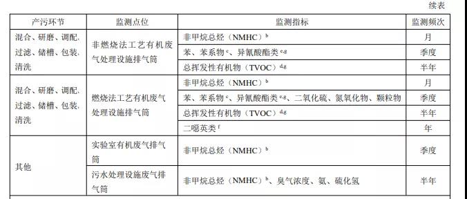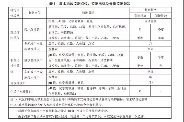 为保护生态环境,保障人体健康,规范排污单位自行监测工作,《排污单位自行监测技术指南 涂装》、《排污单位自行监测技术指南 涂料油墨制造》等六项国家环境保护标准批准发布,并于2020年4月1号实施。本标准是首次发布,由中国环境出版集团有限公司出版,标准内容可在生态环境部网站(http://www.mee.gov.cn)查询。 一、排污单位自行监测技术指南 涂装 1、排污单位废水排放监测点位、监测指标及最低监测频次 2、有组织废气排放监测点位、监测指标及最低监测频次 3、排污单位无组织废气排放监测点位设置、监测指标及最 低监测频次。 二、排污单位自行监测技术指南 涂料油墨制造 1、废水排放监测点位、监测指标及最低监测频次 2、有组织废气排放监测点位、指标及频次 3、无组织废气排放监测点位、指标及频次