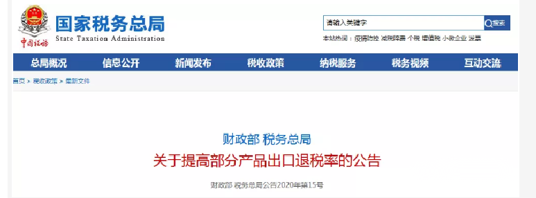近日,国家财政部、税务总局发布一则关于提高部分产品出口退税率的公告。