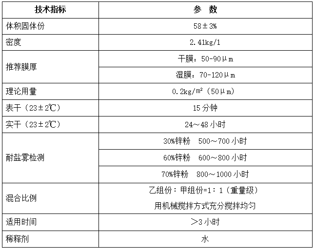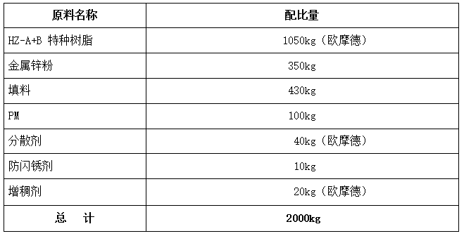 附:HZ-A+B(30%)水性环氧富锌底漆的参考配比