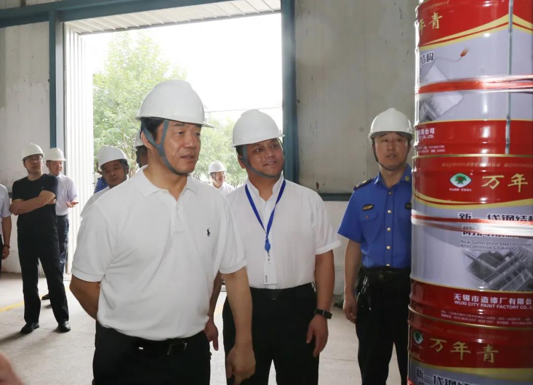 为贯彻落实江苏省化工产业安全环保整治提升百日攻坚行动相关部署,7月14号上午,省工信厅副厅长李强、省工信厅无线电监督检查处处长曹阳率省化工产业安全环保整治提升攻坚行动专项工作组专家一行来无锡市造漆厂有限公司考察调研。无锡市工信局领导陈荣明、张青,江阴市人民政府副市长许迎春,江阴市工信局局长王利峰,镇党委书记王凯陪同调研。 李强一行深入无锡市造漆厂有限公司进行实地查看,详细了解公司安全防范措施、岗位安全职责、隐患排查步骤、环保管理规范等方面工作情况,并要求公司进一步树牢红线意识、底线思维,强化责任担当,提升监管应急能力,做到绿色发展、高端发展、可持续发展,为扎实推进安全环保专项整治工作贡献力量。 座谈会上,李强一行详细听取了无锡市造漆厂有限公司董事长孙建平关于企业安全生产和环保工作的相关汇报。 专家组按照“一企一策”标准对无锡市造漆厂有限公司进行评估论证,确认安全风险辨识表,形成安全生产隐患清单,提出本质安全环保提升建议。