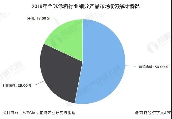 2019年,全球涂料需求市场增长主要得益于建筑业投资增长、汽车工业发展、城市人口增加及全球经济改善。