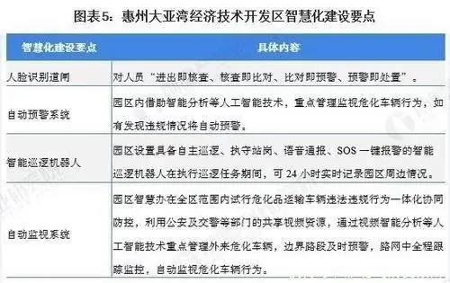 截止至2019年末,广东省有1家智慧化工园区试点示范(创建)单位-惠州大亚湾经济技术开发区。惠州大亚湾经济技术开发区于2018年底启动石化区“智慧园区”建设。建设具体情况如下表:
