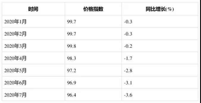 其中,2020年7月涂料、油墨、颜料及类似产品制造工业生产者出厂价格指数同比下降3.6%,是目前为止下降幅度最大的月份。此外,从数据来看,产品价格是一路向下,低价可以说已经在涂料市场蔓延。