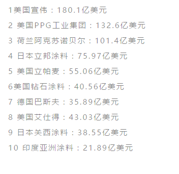 与2019年相比,2020年全球十大涂料公司的排名有所变化:美国艾仕得由原来的第7下滑至第8,德国巴斯夫由原来的第8上升至第7。在全球区域市场方面,十大涂料公司的业绩表现也有所变化;在高层人事方面,日本立邦涂料变化最大,其他公司也有变动。